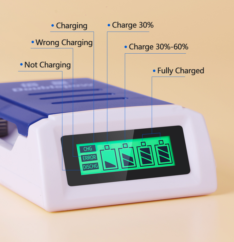 * Independent charging channels – all charging channels are independent, can charge 1-4 pieces AA/AAA Ni-MH/Ni-CD rechargeable batteries. * Safety Guarantee – Battery detection technology, automatically turn to trickle charge when batteries are full charged. * Fast Charging – The charging current can up to 500mA at every independent channel, ensure the battery can be charged quickly. * Intelligent control – Advanced MCU control, over-heat and over-current protection, short-circuit protection, non-rechargeable and |
