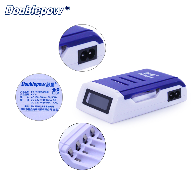 Doublepow K209 4 Slot Smart lcd display universal 1.2v nimh nicd AA AAA battery charger