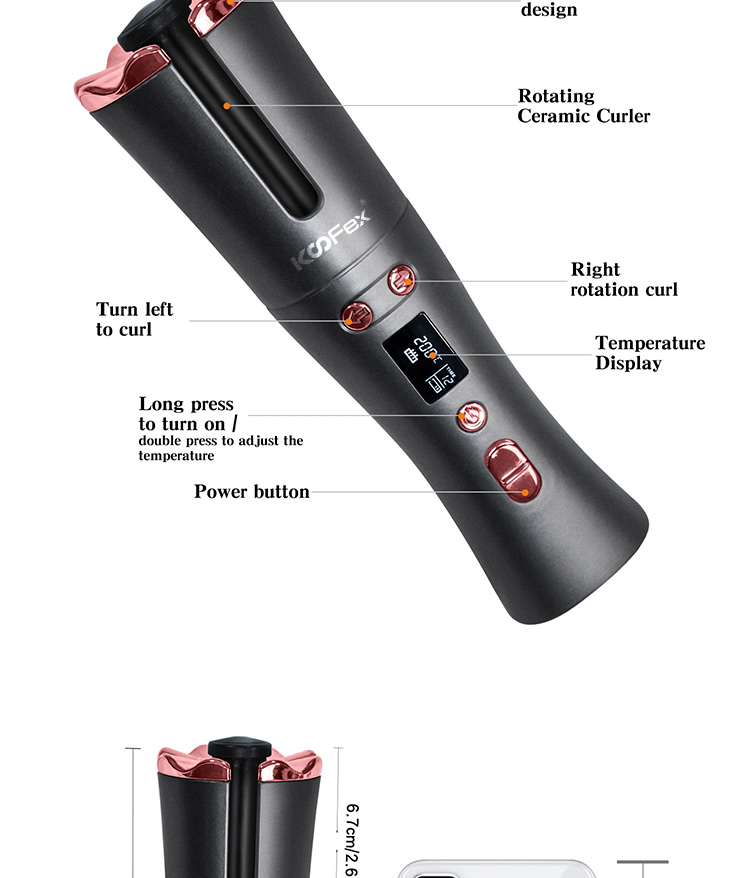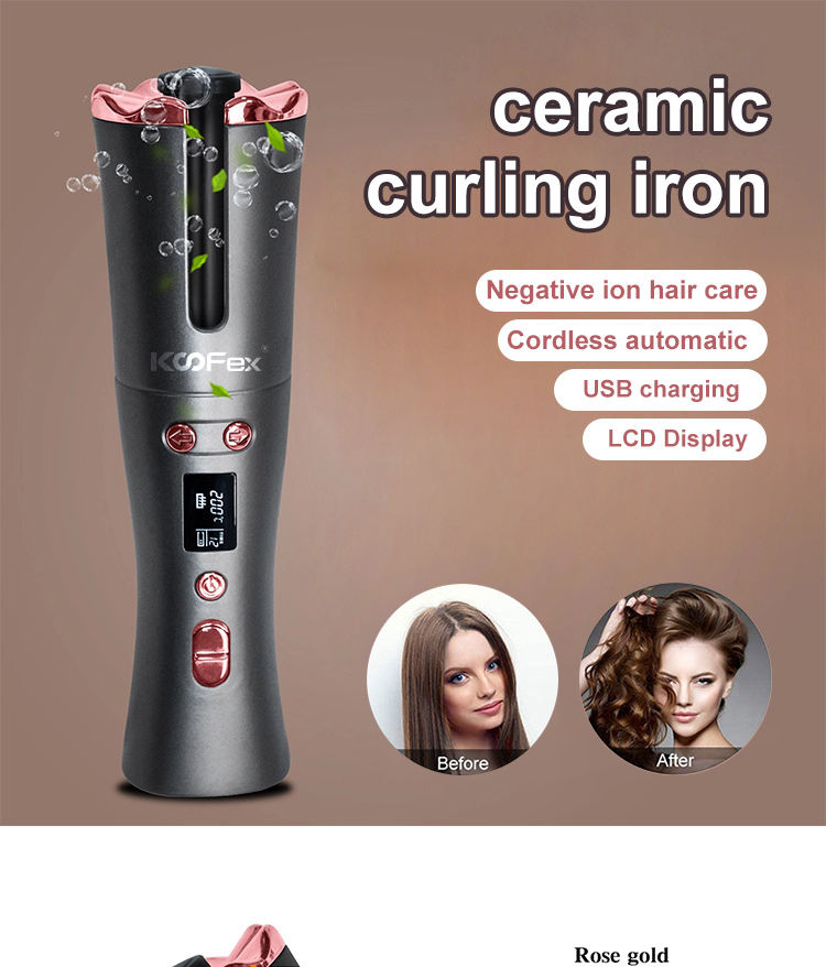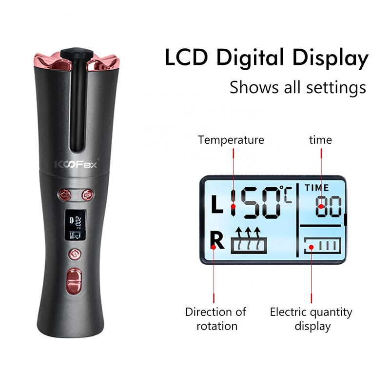 Hair Accessories, Straightener and CurlerProfessional Ceramic Magic Adjustable USB Charger Rotating Lcd Display Hair Curling Iron Cordless Automatic Hair Curler//